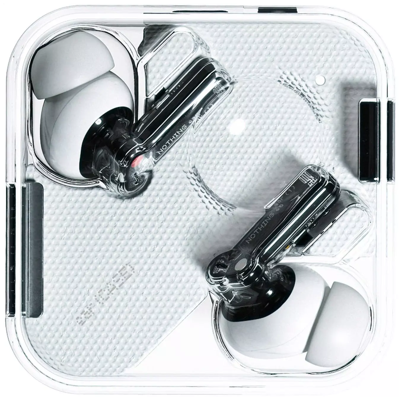 Nothing ear (1) отличаются от большинства других TWS-наушников своим внешним видом. Футуристический дизайн и, в частности, прозрачный корпус делают их очень необычными. Влагозащита по стандарту IPX4 позволяет наушникам оставаться невредимыми под воздействием брызг, дождя и капель пота. Управление ear (1) осуществляется с помощью жестов по сенсорной панели.