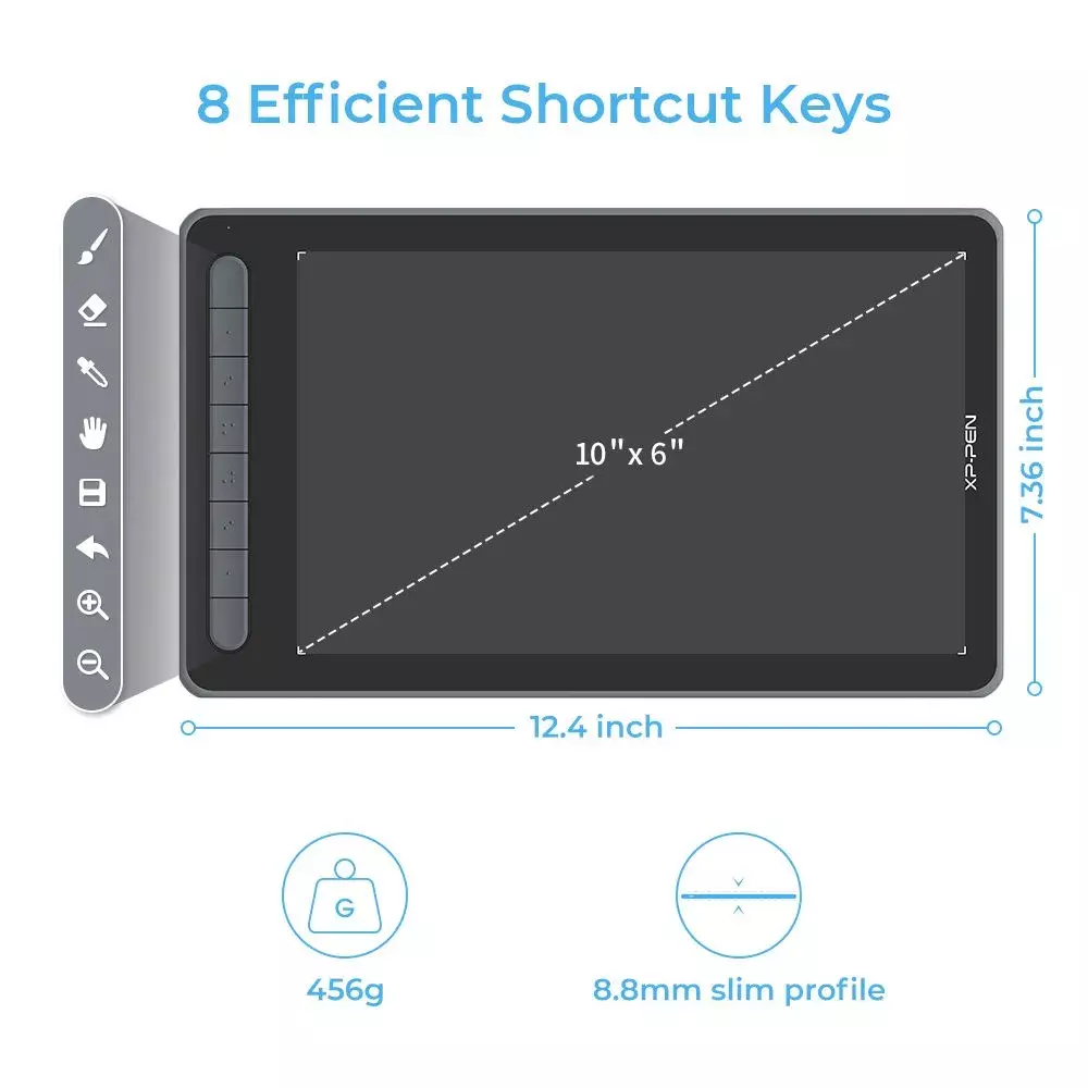 Графические планшеты Deco L - Новое поколение графических планшетов. Больше, чем просто умный! Новый стилус с чипом Х3 - это новые возможности для рисования с более тонкой чувствительностью к нажатию и гораздо более коротким втягиванием наконечника. Его точность сопоставима с карандашом. Графические планшеты работают с большинством программ для рисования, включая Adobe Photoshop, Illustrator, SAI, GIMP, Krita, MediBang Paint, FireAlpaca, Blender и другие, а так же поддерживают операционные системы Windows, Mac, Android, Chrome OS и Linux. Такая совместимость расширяет ваши творческие горизонты! Восемь горячих клавиш, которые можно настроить в соответствии с необходимыми сочетаниями для различных команд, заменяя, таким образом, клавиатуру компьютера. Тактильно ощутимые выступы на клавишах позволяют быстро вслепую определить правильную даже в темноте, помогая ускорить рабочий процесс.