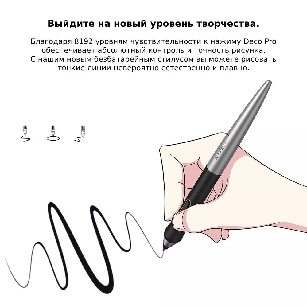 Благодаря 8192 уровням чувствительности к нажиму Deco Pro обеспечивает абсолютный контроль и точность рисунка. С нашим новым безбатарейным стилусом вы можете рисовать тонкие линии невероятно естественно и плавно.