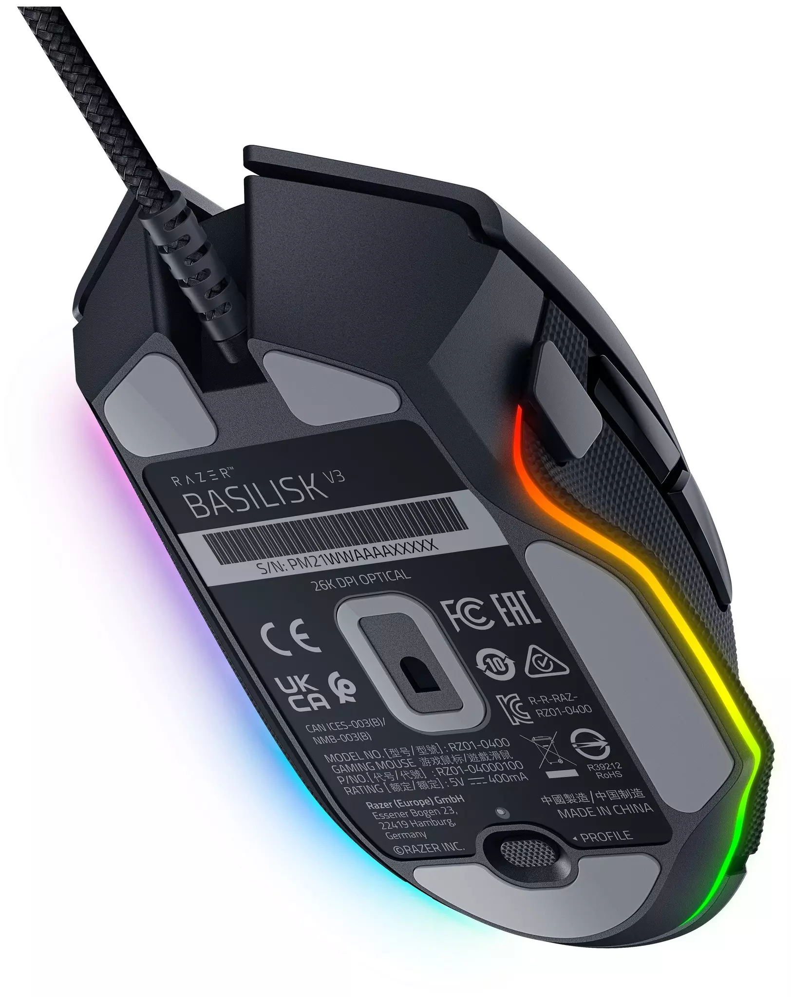 - Оптический сенсор Razer Focus+ с реальным разрешением 26 000 DPI и с точностью отслеживания 99,6%