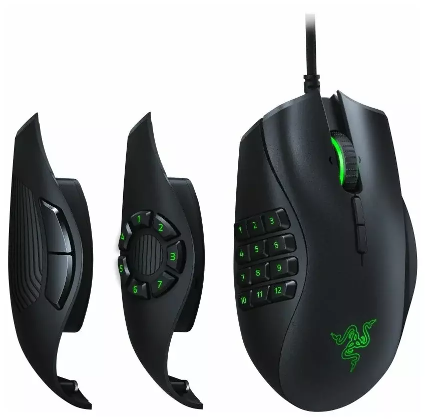 Мышь RAZER Naga Trinity обеспечит преимущество в любой игре: от шутеров до стратегий. Главная особенность – три сменные боковые панели с 2, 7 и 12 кнопками. Благодаря им количество клавиш доводится до 19. Значения каждой задается в штатном программном обеспечении.