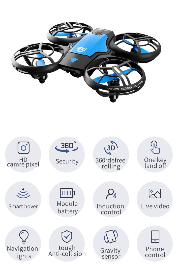 По сравнению с радиоуправляемыми вертолетами квадрокоптеры имеют улучшенные показатели управляемости и низкий уровень шума. Синий с черным квадрокоптер V8 (WI-FI, FPV, 3 батареи) характеризуется такими достоинствами: