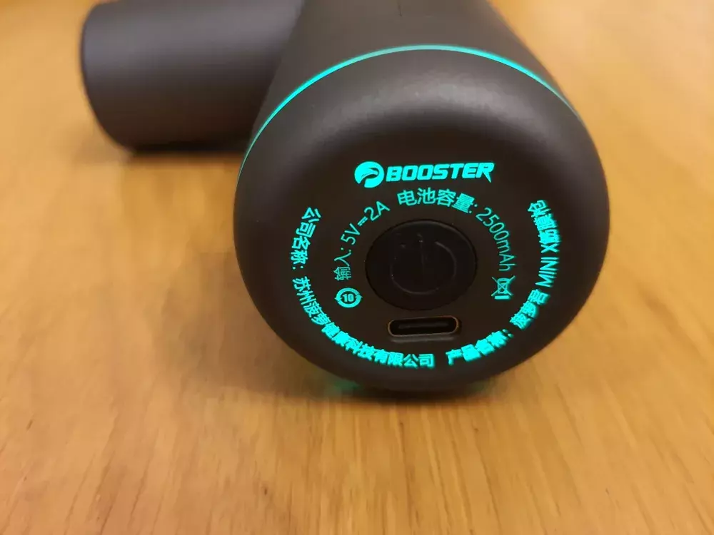 Массажный пистолет имеет ёмкий аккумулятор на 2500 мАч. Зарядка устройство происходит через Type-C, что обеспечивает быструю зарядку и долгую работу.