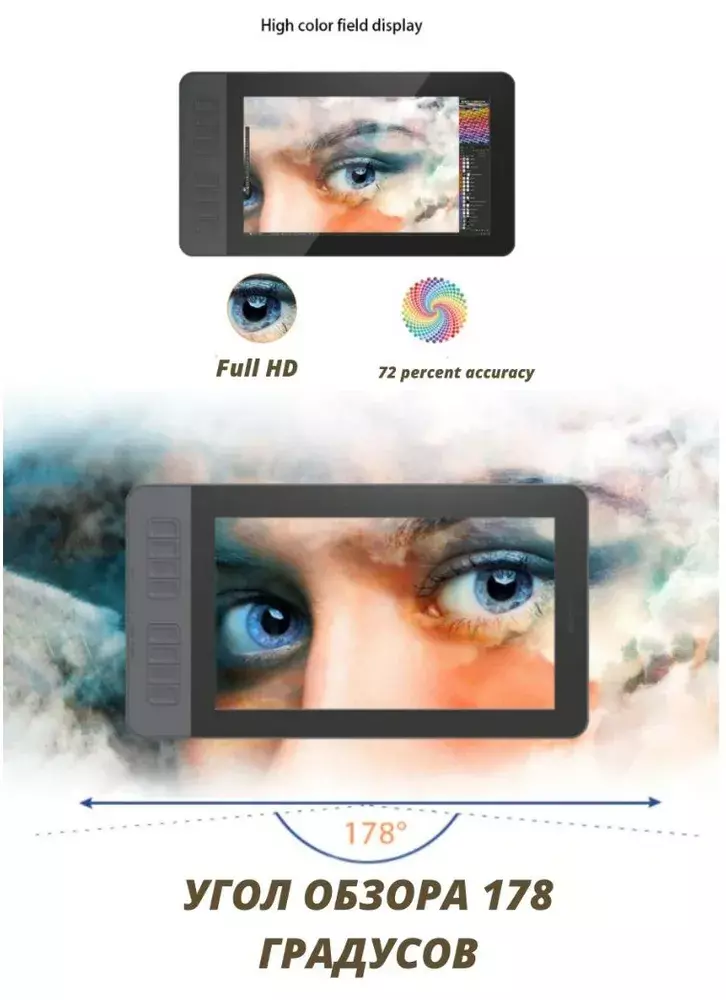 Портативный размер. Рабочая поверхность 11.6 дюйма. Отлично подойдет для любых потребностей. Толщина всего 15мм. Удобно носить с собой и не ограничиваться рабочим пространством дома. Замечательное качество экрана IPS Full HD с углом обзора 178 градусов. Он обеспечит большую площадь работы, невероятной четкостью изображения и насыщенностью цветов. Поддержка 2 и даже 3 мониторов. Можно подключить к компьютеру через расширенный режим, и заниматься своими делами на планшете (Рисовать, творить и моделировать), в то время как на другом мониторе будут выполняться другие задачи. Перо: ArtPaint AP50 pа счет 8192 уровня чувствительности к нажатию P05R предоставляет вам повышенную точность, контроль и плавность линии - для лучших эскизов и рисунков.